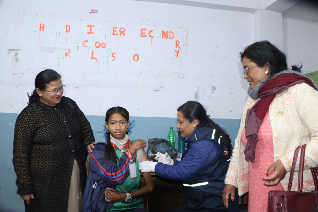 भनपाका उपप्रमुख रजनी जोशीद्वारा भक्तपुर नगरभित्र सञ्चालनमा रहेका कक्षा ६–१० सम्म अध्ययन अध्यापन हुने विद्यालयहरुमा पाठेघरको मुखको क्यान्सरविरुद्धको खोप अभियानअन्तर्गत भनपा वडा नं. २ अन्तर्गतका विद्यालयहरुमा खोप सञ्चालन केन्द्रहरुमा आज अनुगमन गर्नुभयो ।