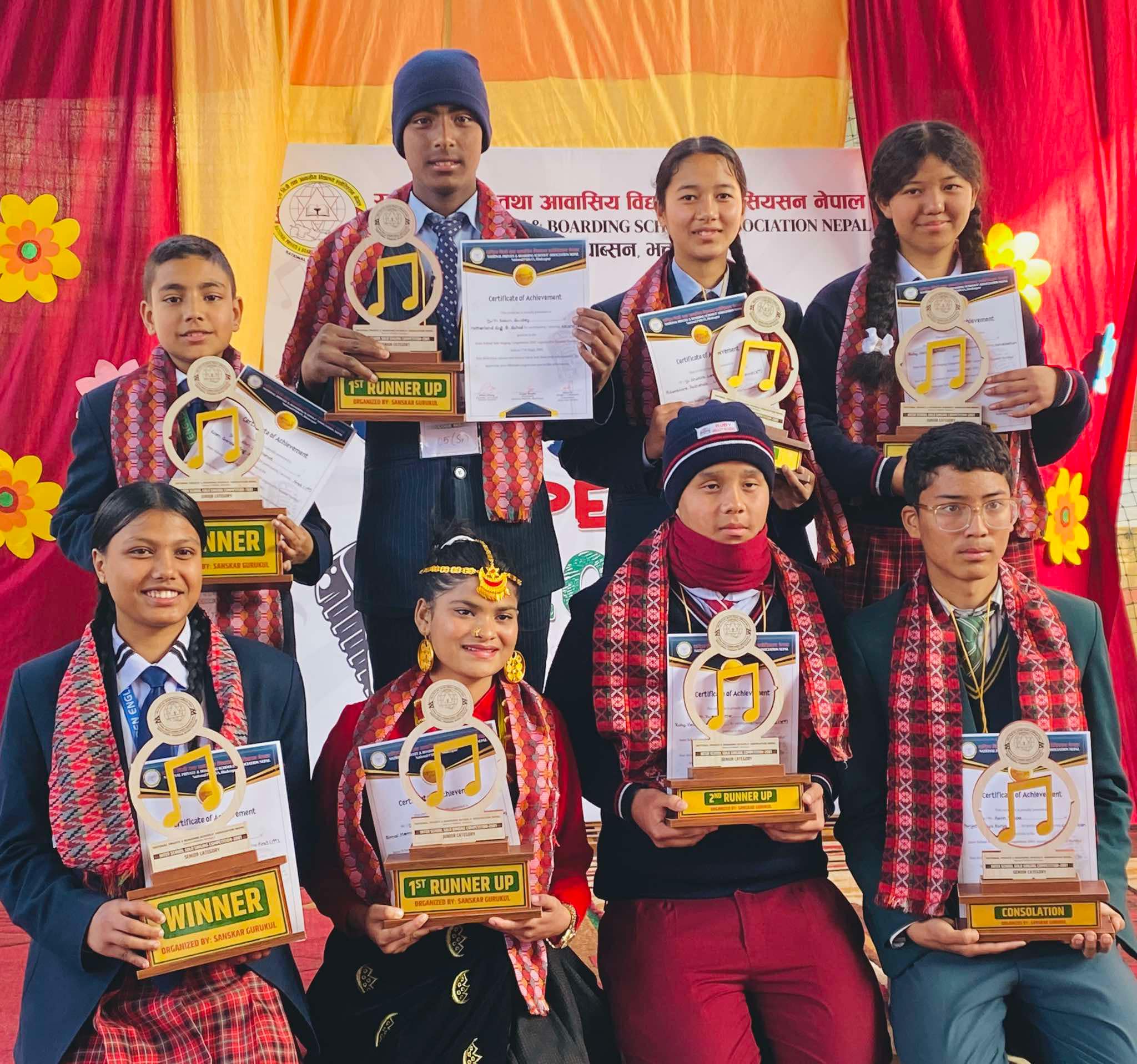 नेसनल प्याव्सन भक्तपुरमा आवद्ध सदस्य विद्यालयहरु बीचमा प्रतिस्पर्धा भएको उक्त एकल गायन प्रतियोगिताको आधारभूत तहको द्धितीय स्थान मदरल्याण्ड स्कुलको सविन गुइदे, तृतीय स्थान ऋतम्भरा स्कुलकी साकिरा लामा र सान्त्वना स्थान रुबी भ्यालीकी एन्जल मोक्तान हुन सफल भएका छन् ! त्यसै गरी माध्यमिक तहको द्धितीय स्थानमा विमल मेमोरियल विद्यापीठकी अनु वाडे, तृतीय स्थानमा रूबी भ्यालीको यूजेन लामा र सान्त्वना स्थानमा पारीजात विद्याकुन्जको असिम थापा विजेता भएका छन् ! एकल गायन प्रतियोगिताको निर्णायक मण्डलमा मित्र केसी, कृष्णराम खत्री र गोपाल पहाडी रहेका थिए !