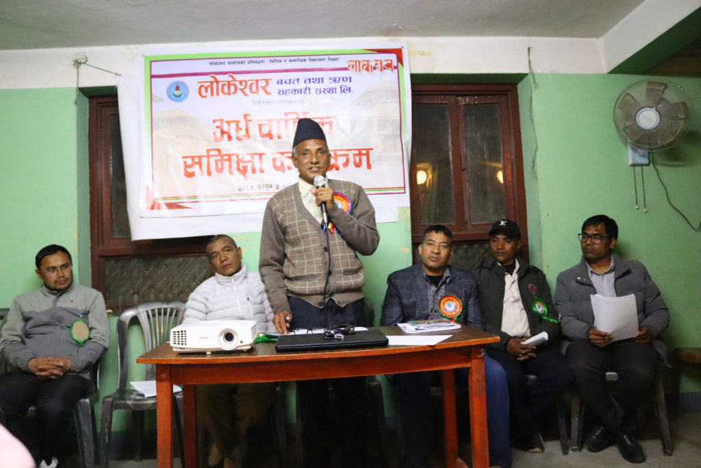 भक्तपुर, फागुन ६ । लोकेश्वर बचत तथा ऋण सहकारी संस्था लि. इताछें, भक्तपुरको आ.व. २०८१/०८२ को अर्ध बार्षिक समिक्षा कार्यक्रम साविक भक्तपुर नपा वडा नं. १५ का पूर्व वडा अध्यक्ष एवं संस्थाका संस्थापक सदस्य रविन्द्र खर्बुजाको प्रमुख आतिथ्यतामा सम्पन्न भयो ।