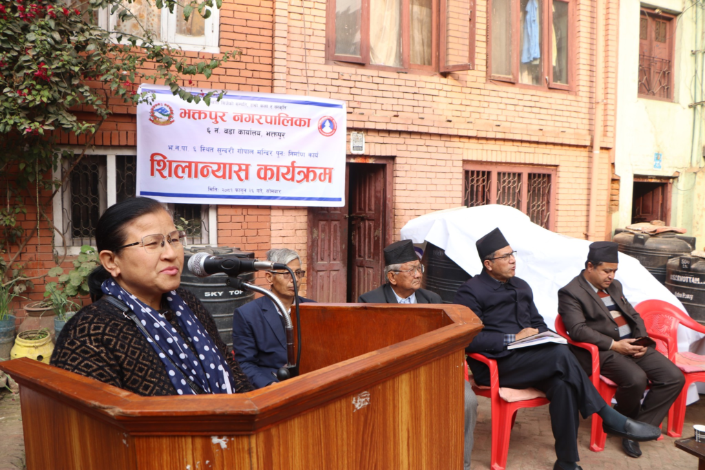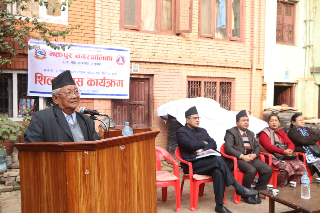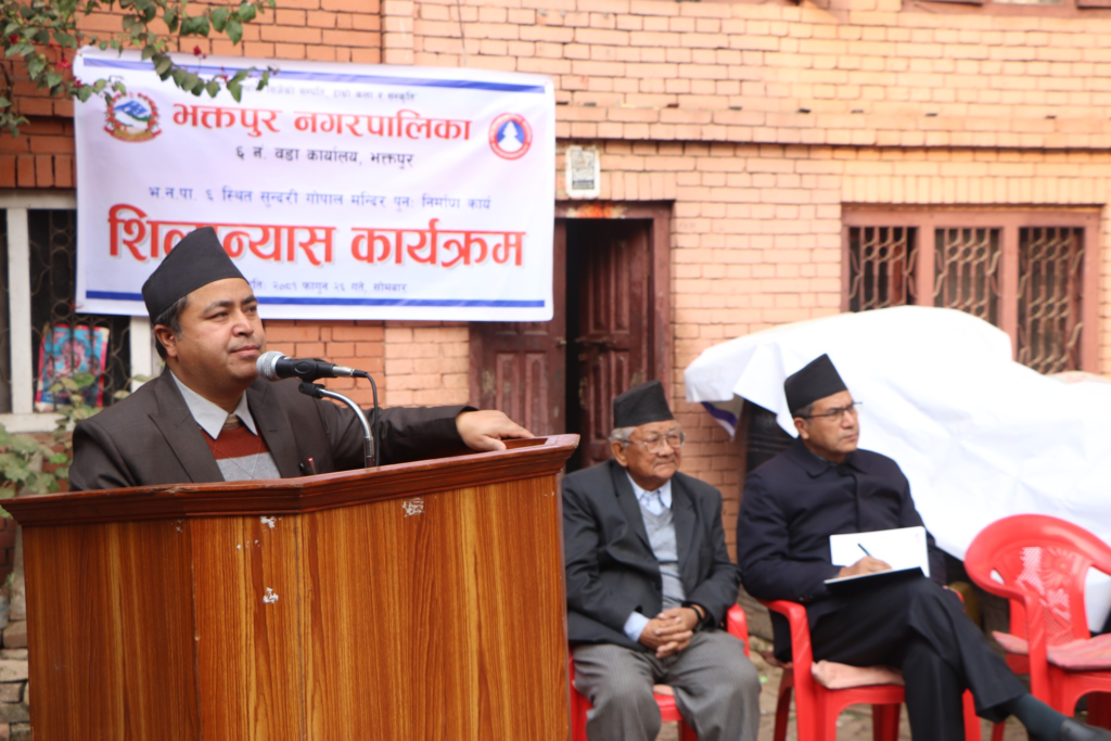 शिलान्यास कार्यक्रममा बोल्दै प्रमुख प्रजापतिले जनताको सहभागितामा सम्पदा पुनःनिर्माण र जीर्णोद्धार भक्तपुरको विशेषता नै बनेको बताउनुभयो ।