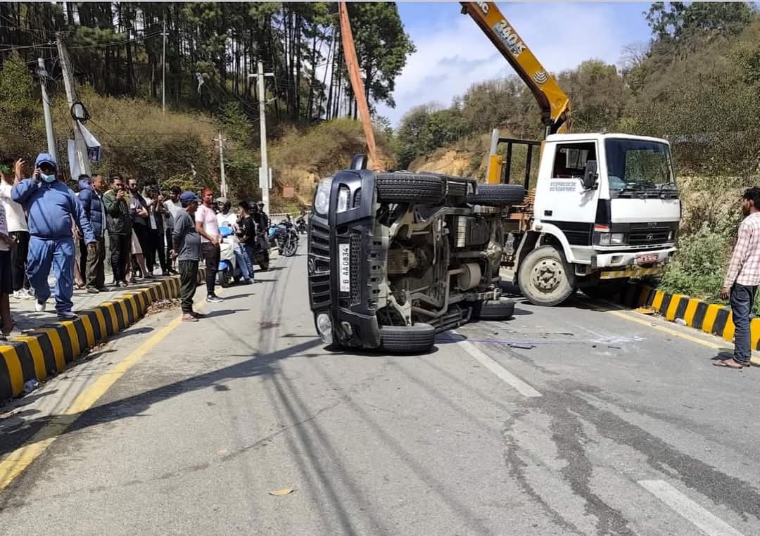 भक्तपुर, फागुन २९ । सूर्यबिनायक नगरपालिका वडा नं ५ स्थित सुवर्णस्वरबाट गुण्डुतर्फ जाँदै गरेको बीएए ०८३४ नम्बरको स्कार्पियो गाडी तीव्र गतिको कारण अनियन्त्रित भएर हात्ति गौँडा अर्थात गुण्डुको छेडोमा दिउसो दुर्घटना भएको छ । दुर्घटनामा सुर्यविनायक नगरपालिका-५ कटुन्जे बस्ने २९ वर्षीय सविन अछामी, २८ वर्षका कमल अछामी, सुवोध अछामी, २५ वर्षीय विनोद खत्री, २२ वर्षीय राजेश पोखरेल,३५ वर्षका विवेक बस्नेत, २७ वर्षीय रूपा पन्त र २७ वर्षीय आशिष अछामी घाइते भएका छन्। घाइतेहरुको अहिले उपचार भैरहेको छ ।