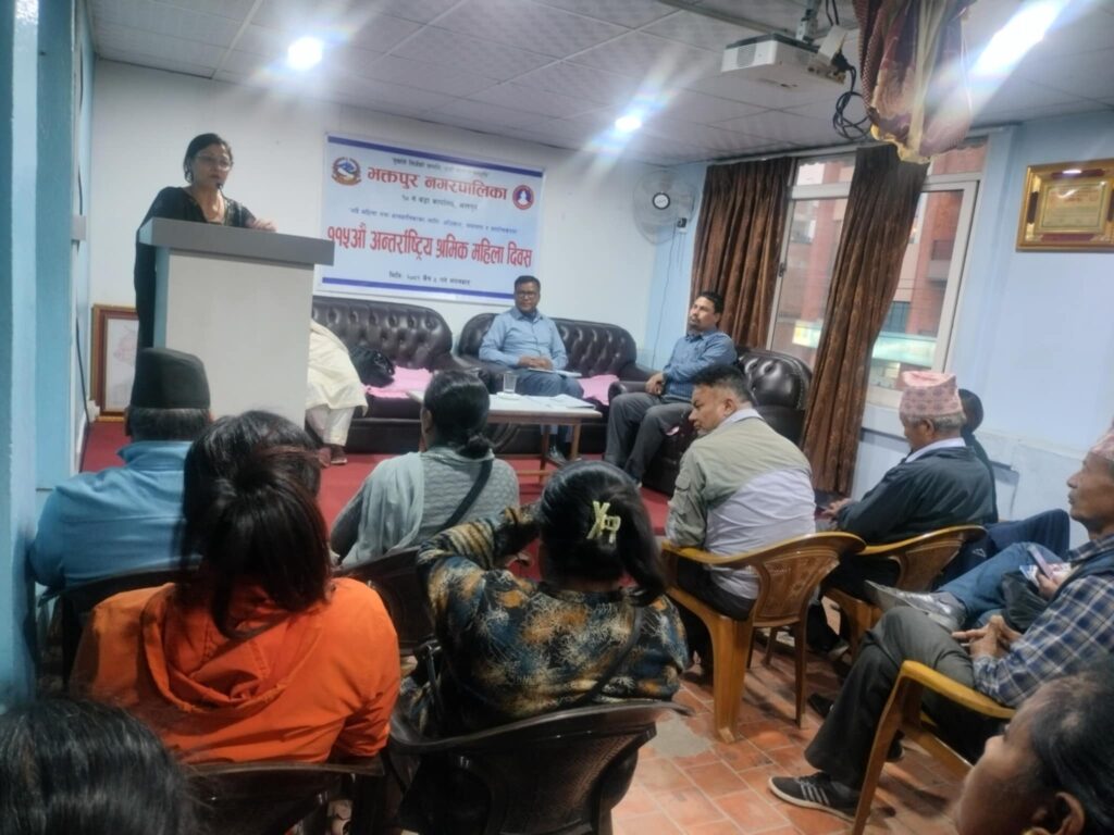 भक्तपुर, चैत ५ । भक्तपुर नगरपालिका वडा नं १० कार्यालयको आयोजनामा ११५ औं अन्तर्राष्ट्रिय श्रमिक महिला दिवस सबै महिला तथा बालबालिकाका लागि अधिकार, समानता र शसक्तिकरण भन्ने नाराका साथ उपप्रमुख रजनी जोशीको प्रमुख आतिथ्यतामा वडा कार्यालयको सभाकक्षमा मंगलबार सम्पन्न भयो ।