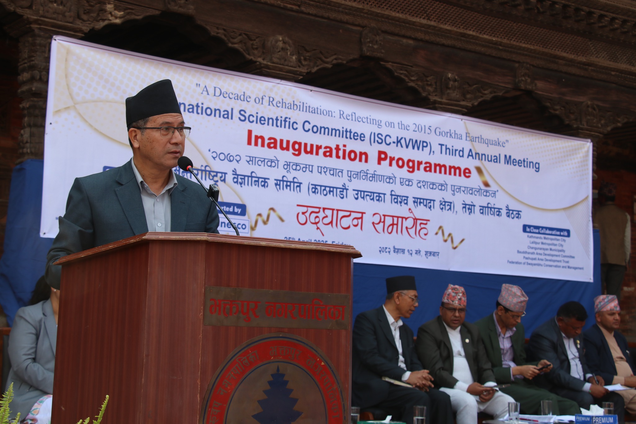 ‘२०७२ सालको भूकम्प पश्चात पुनःनिर्माणको एक दशकको पुनरावलोकन’ विषयक अन्तराष्ट्रिय वैज्ञानिक समिति (काठमाडांै उपत्यका विश्व सम्पदा क्षेत्र) को तेस्रो वार्षिक बैठकको पूर्ण सफलताको शुभकामना व्यक्त गर्दछौं ।