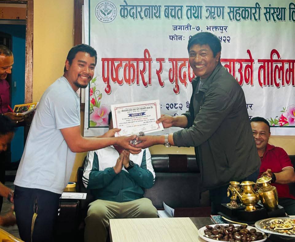 भक्तपुर, १३ बैशाख । केदारनाथ बचत तथा ऋण सहकारी संस्था लि.ले एक दिने पुष्टकारी र गुदपाक बनाउने तालिम संस्थाको सभाकक्ष जगातीमा शनिवार एक समारोह बीच सम्पन्न भयो ।