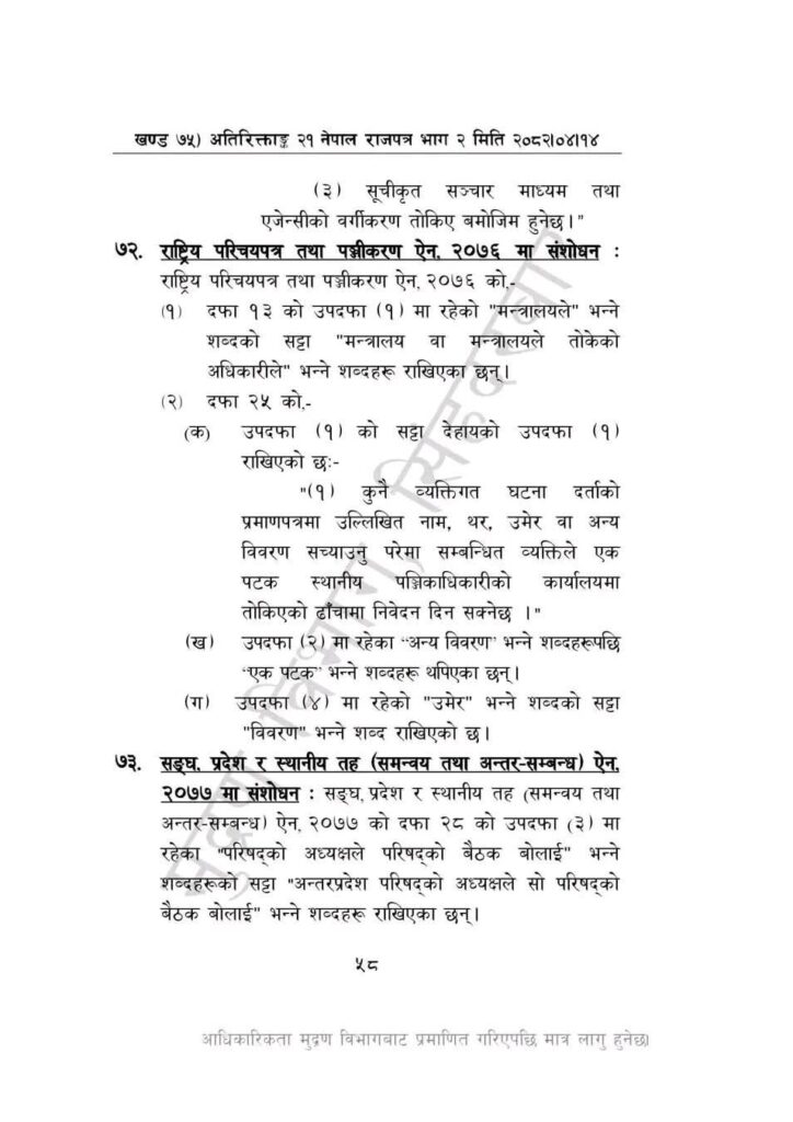 सरकारले केही नेपाल ऐन संशोधनमार्फत राष्ट्रिय परिचयपत्र तथा पञ्जीकरण ऐन, २०७६ संशोधन गर्दै यस्तो व्यवस्था गरेको हो ।