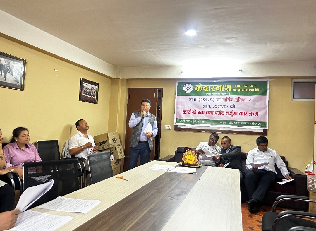 भक्तपुर, भाद्र ६ । केदारनाथ बचत तथा ऋण सहकारी संस्था लि.को आ.व. २०८१/०८२को वार्षिक समिक्षा र आ.व. २०८२/०८३ को कार्य योजना तथा बजेट तर्जुमा कार्यक्रम संस्थाका अध्यक्ष राजभाइ तजलेको सभापतित्व संस्थाको सभाकक्ष जगातीमा शुक्रबार सम्पन्न भयो ।