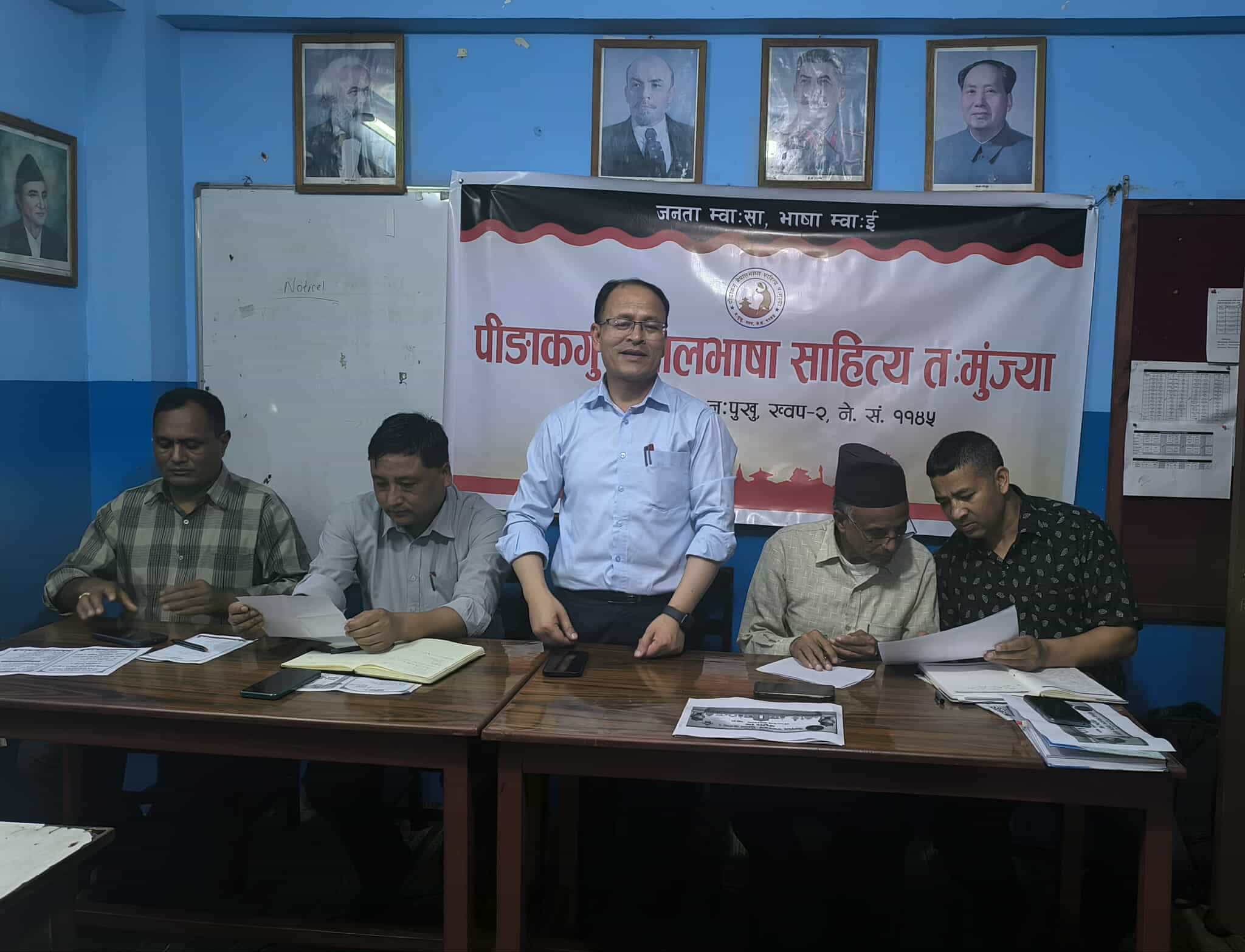 बैठकमा ४५औं नेपाल भाषा साहित्य तःमुंज्याका अध्यक्ष रविन्द्र खर्बुजाको सभापतित्वमा भक्तपुर नगरपालिका–२ का वडा अध्यक्ष हरिप्रसाद बासुकलाले विगतका सरकारले भ्रष्टाचारमा डुबेको र मजदुर–किसानका हितमा ठोस काम गर्न नसकेको टिप्पणी गर्नुभयो ।