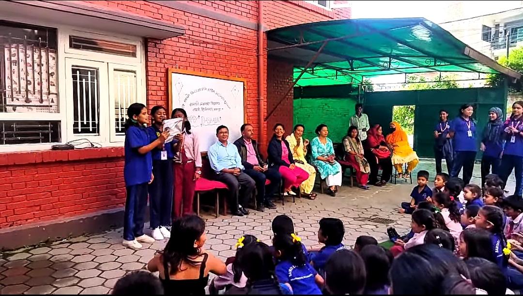 भक्तपुर, असोज ५। सिर्जनानगर नपली १ स्थित सन्तति आधारभूत विद्यालयमा विजया दशमी २०८२ को अवसरमा आइतबार शुभकामना आदानप्रदान गरियो ।