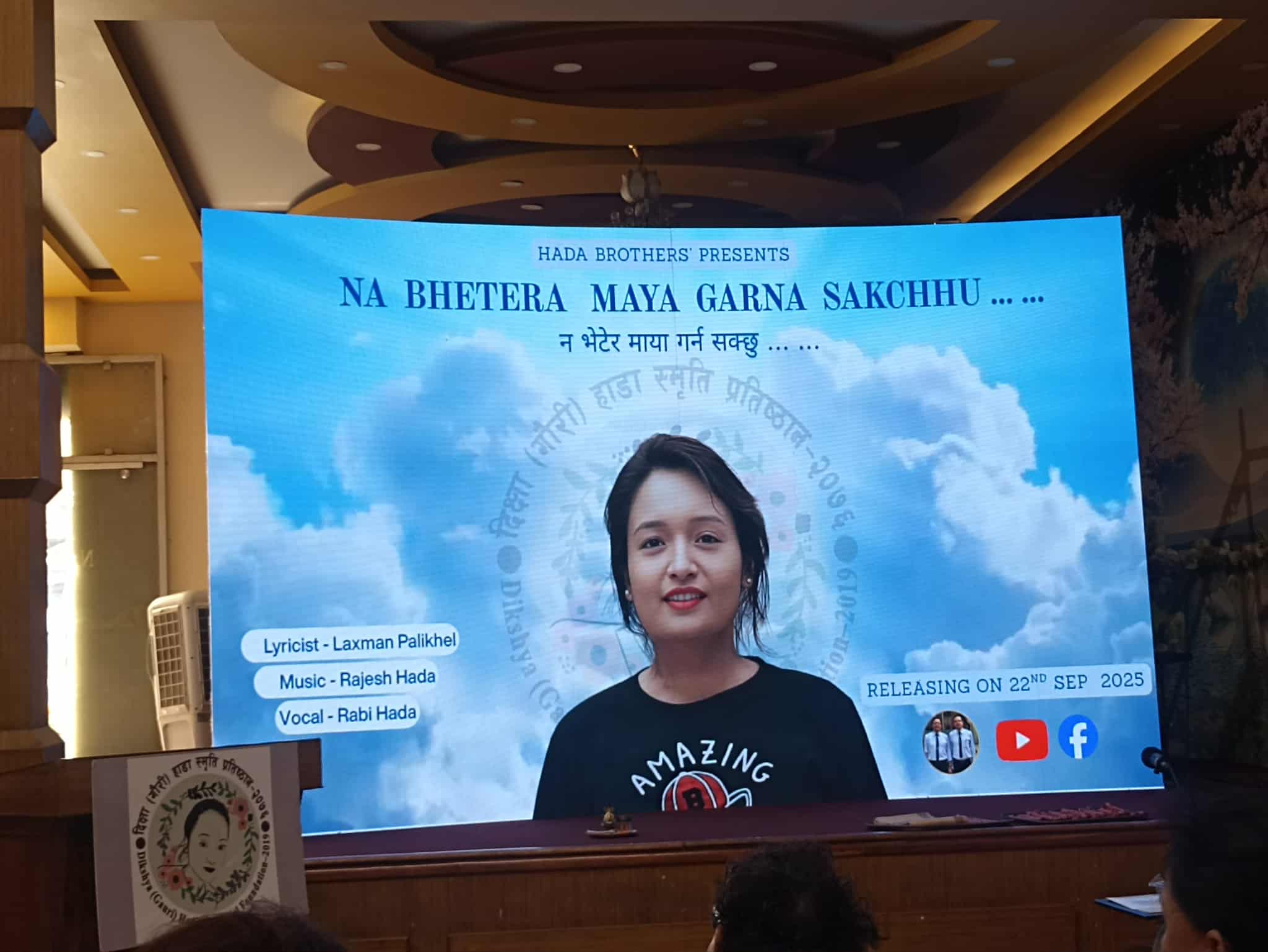 कार्यक्रमको उद्घोषण लक्ष्मण पलिखेलले गर्नुभएको थियो भने स्वागत मन्तव्य प्रतिष्ठानका आजीवन सदस्य विजय हाछेथुले दिनुभएको थियो अध्यक्ष राजेश हाडाले गीतको पृष्ठभुमिबारे प्रकाश पार्नुभयो भने गायक रवी हाडाले उक्त गीतको लाइभ प्रस्तुति समेत दिनुभएको थियो ।