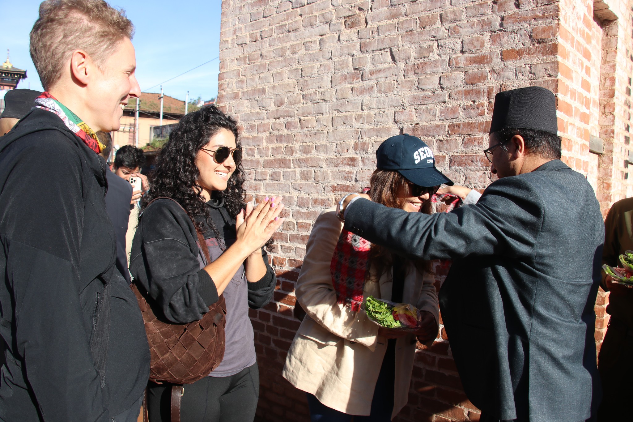 शनिबार बिहान भक्तपुर दरबार क्षेत्रको खौमा ध्वाकामा खादा, भादगाउँले टोपी, परम्परागत थैली र पुष्पगुच्छाका साथ पर्यटकहरुलाई स्वागत गरिएको हो ।