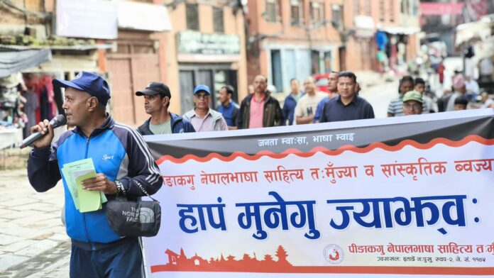 भक्तपुरको बजार क्षेत्रमा ४५औं नेपाल भाषा साहित्य तःमुंज्याको प्रचार प्रसार तथा आर्थिक संकलन