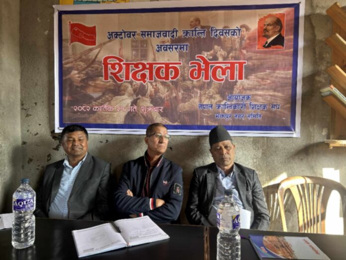 कार्तिक २, भक्तपुर । नेपाल क्रान्तिकारी शिक्षक संघ नगर समितिको आयोजनामा सोभियत संघ र महान अक्टोबर क्रान्ति विषयक छलफल कार्यक्रममा शुक्रबार शिक्षक भेला सम्पन्न भयो ।
