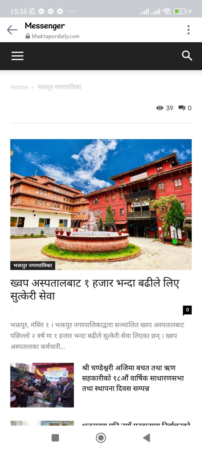भक्तपुर नगरपालिकाद्वारा सञ्चालित ख्वप अस्पतालबाट पछिल्लो २ वर्ष मा १ हजार भन्दा बढीले सुत्केरी सेवा लिएका छन् । ख्वप अस्पतालका कर्मचारी भेटघाट कार्यक्रममा अस्पतालका निमित्त मेडिकल डाइरेक्टर डा. मजेशप्रताप मल्लले अस्पतालबाट नर्मल र शल्यक्रियामार्फत १ हजार भन्दा बढीले सन्तान जन्माएको जानकारी दिनुभयो ।