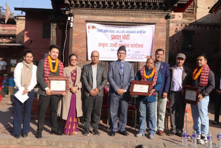 ११ औं उद्योग दिवस–२०८२ को अवसरमा उद्योग तथा वाणिज्य कार्यालय भक्तपुरले तीनजना उत्कृष्ट उद्यमीहरुलाई सम्मान गर्दै दत्तात्रयस्थित एक कार्यक्रम सम्पन्न गरेको छ।