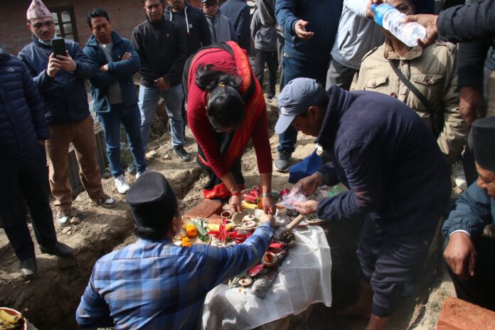भक्तपुर नगरपालिकाका प्रमुख सुनिल प्रजापतिले आज भक्तपुर नपा वडा नं. ४ तालाक्व दम्फोमा अवस्थित फल्चा (पाटी) पुनःनिर्माणको लागि शिलान्यास गर्नुभयो ।