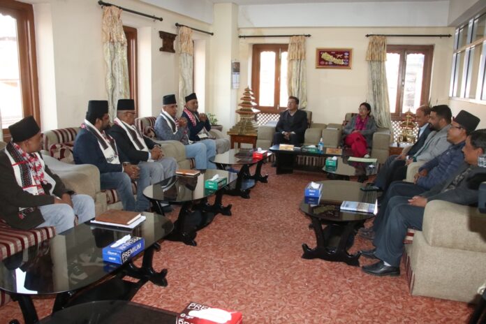 भक्तपुर नगरपालिकाका प्रमुख सुनिल प्रजापतिसँग झापाको दमक नगरपालिकाका नगर प्रमुख रामकुमार थापा नेतृत्वको जनप्रतिनिधि र कर्मचारीहरुको टोलीले भनपा सभाकक्षमा भेट ग¥यो । नगर प्रमुख प्रजापतिले टोलीलाई खादा र भादगाउँले टोपीले नगरपालिकामा स्वागत गर्नुभयो ।