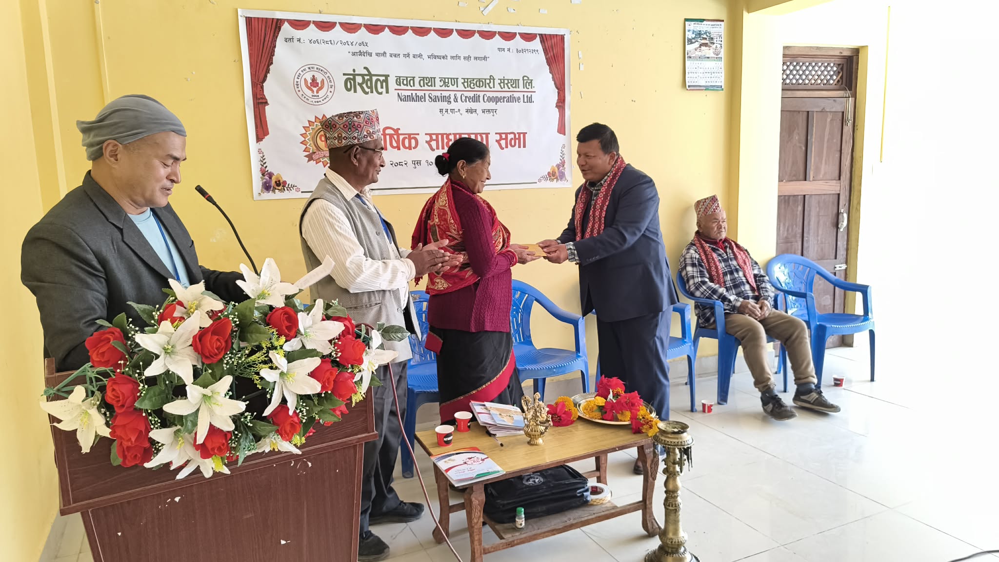 नंखेल बचत तथा ऋण सहकारी संस्था लि.भक्तपुर सुर्यबिनायकको को १७ औं वार्षिक साधारण सभा नन्दिकेस्वर महादेवको सामुदायिक भवनमा बिहिवार सम्पन्न भयो | सभाको उदघाटन संस्थाका जेष्ठ सदस्य जंग बहादुर कासुला र भक्तपुर जिल्ला बचत तथा ऋण सहकारी संघ लि.का संचालक सदस्य राजकुमार लघुले संयुक्त रुपमा पानसमा दिप प्रज्वलित गरि गर्नुभयो | |