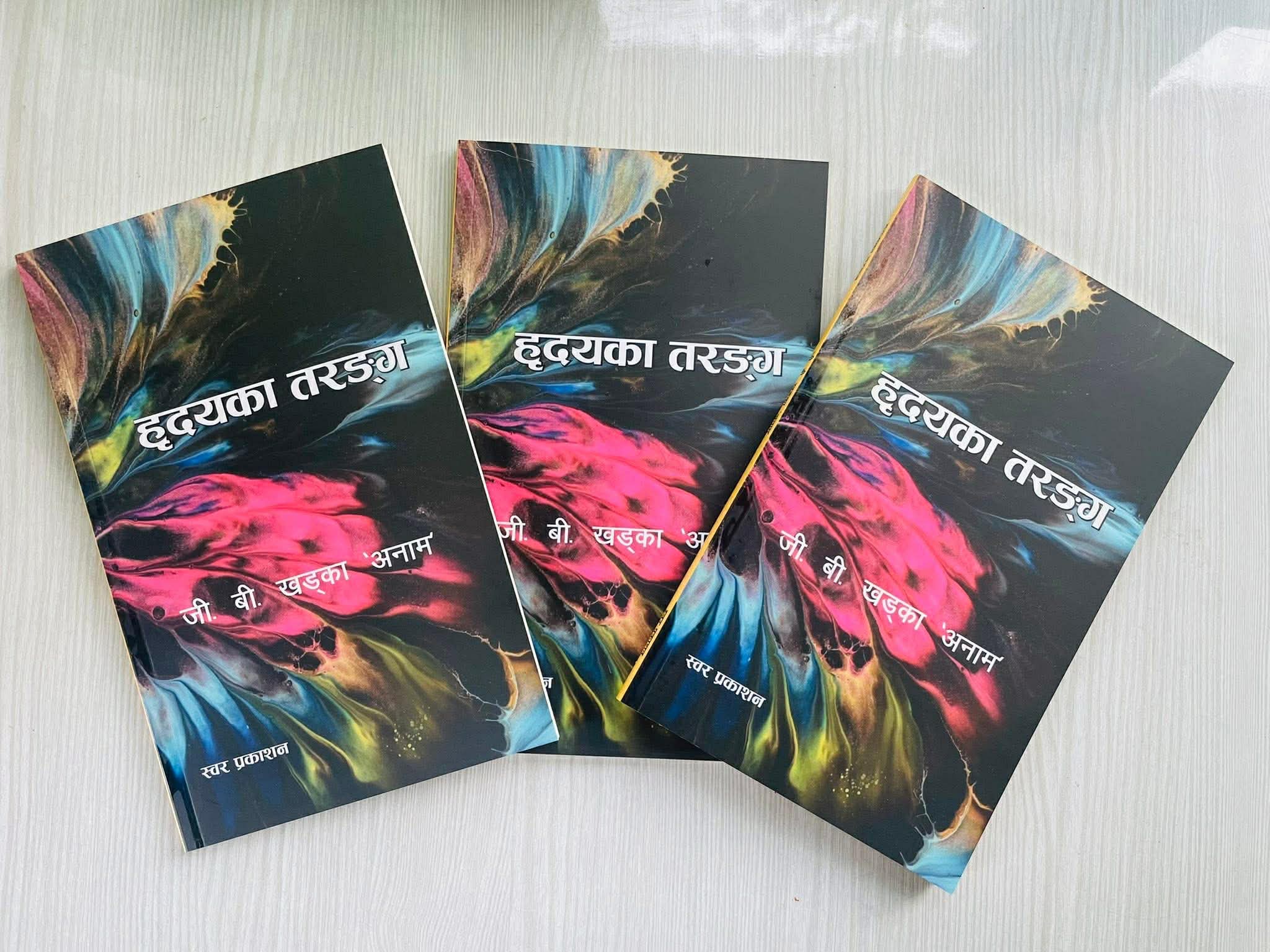 भक्तपुर, पुस १४ । शिक्षासेवी तथा साहित्यकार जी. बी. खड्का (अनाम)को दोस्रो कविता सङ्ग्रह ‘हृदयका तरङ्ग’ प्रकाशित भएको छ। लामो समयदेखि शिक्षा क्षेत्रमा सक्रिय रहँदै आउनु भएका खड्काको यस कृतिले उहाँको साहित्यिक यात्रालाई निरन्तरता दिदै सामाजिक अनुभूति र मानवीय भावनालाई कवितामार्फत अभिव्यक्त गरेको छ।