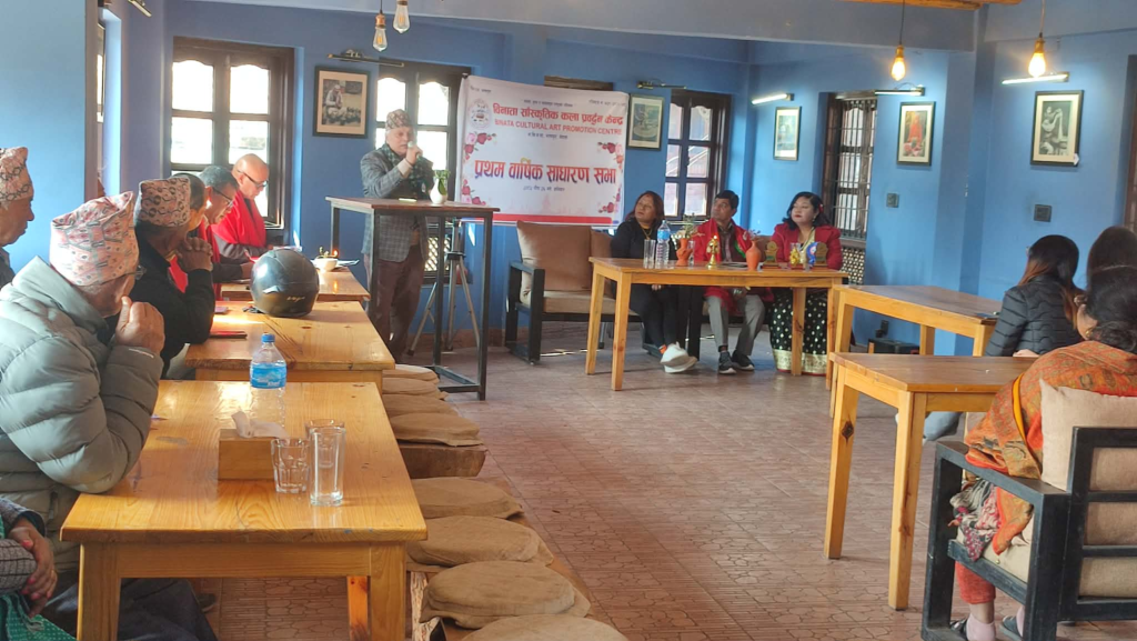 विनाता सांस्कृतिक कला प्रवद्र्धन केन्द्र भक्तपुर नेपालको प्रथम वार्षिक साधारण सभा आज भक्तपुरमा एक विशेष समारोहबीच सम्पन्न भएको छ। संगीतज्ञ तथा प्राध्यापक धन बहादुर गोपालीको प्रमुख आतिथ्यतामा सम्पन्न उक्त साधारण सभा संस्थागत इतिहासमा महत्वपूर्ण उपलब्धिका रूपमा लिइएको छ।