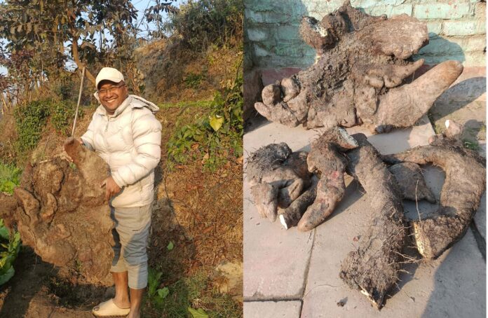 भक्तपुर । चाँगुनारायण नगरपालिका वडा नं. ९ अन्तर्गत ताथली–तैकाबु क्षेत्रमा स्थानीय किसान उत्तम साखकर्मीले आफ्नै मेहनत र परिश्रमद्वारा आफ्नै बारीमा उत्पादन गरेको विशुद्ध अर्गानिक तरुलको उत्खनन् कार्य सफलतापूर्वक सम्पन्न भएको छ।