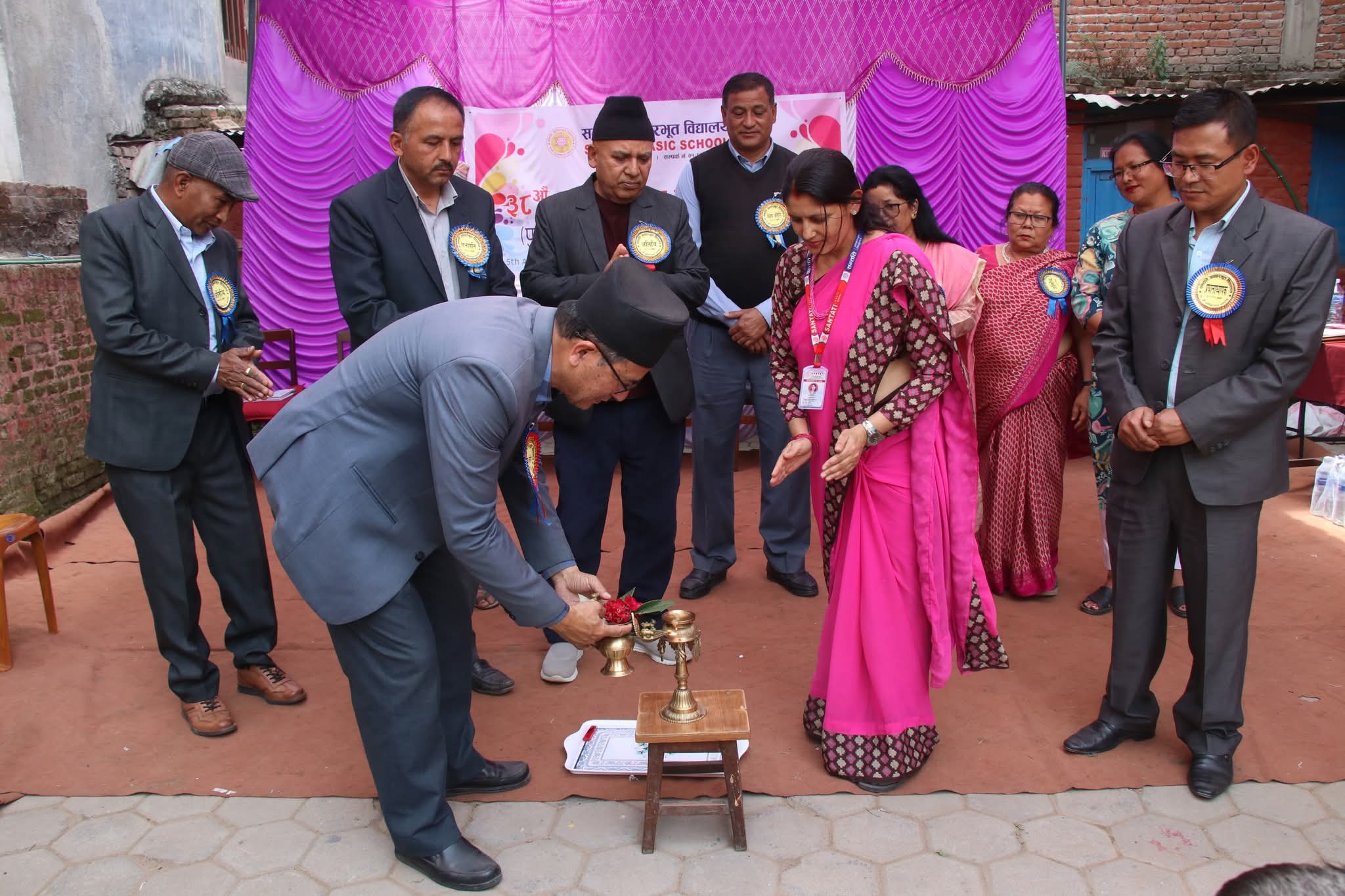 कार्यक्रममा विद्यालय व्यवस्थापन समितिका अध्यक्ष तथा कार्यक्रमका सभापति सूर्य प्रसाद श्रेष्ठले विद्यालयको शैक्षिक प्रगतिको लागि शिक्षक, विद्यार्थी र अभिभावकहरुको महत्वपूर्ण भूमिका रहने चर्चा गर्नुहुँदै विद्यालयले आगामी वर्षदेखि कक्षा ८ को पढाई सञ्चालन गर्ने तयारी रहेको जानकारी दिँदै वडावासी अभिभावकहरुको साथ र सहयोगको अपेक्षा गर्नुभयो । साथै उहाँले विद्यालयमा स्थान अभावका कारण विद्यालयको पठन पाठनमा कठिनाई भइरहेको हुँदा थप भवन निर्माणको लागि भक्तपुर नपाबाट आवश्यक पहल गर्नुपर्नेमा जोड दिनुभयो ।