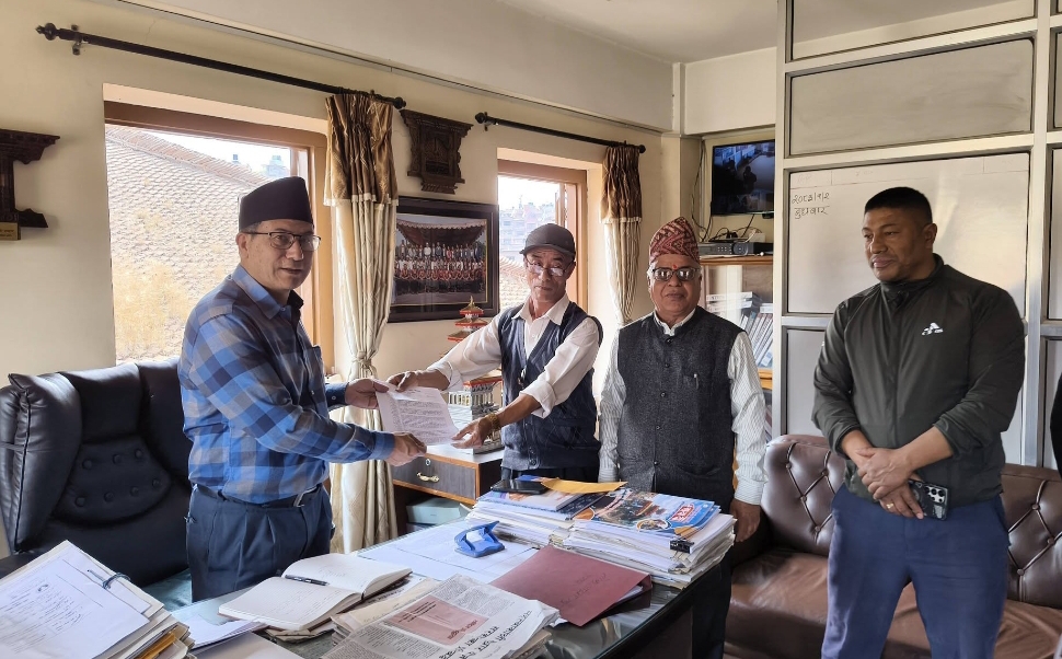 भक्तपुर, २०८२ बैशाख २ । भक्तपुर नगरपालिकाका प्रमुख सुनिल प्रजापतिलाई अभिभावक संघ नेपाल भक्तपुर जिल्ला समितिका निवर्तमान अध्यक्ष मणिरत्न बज्राचार्यले ज्ञापन–पत्र पढेर बुधबार व्यासी, भक्तपुर नगरपालिकाको प्रमुखको कार्यकक्षमा बुझाउनुभयो ।