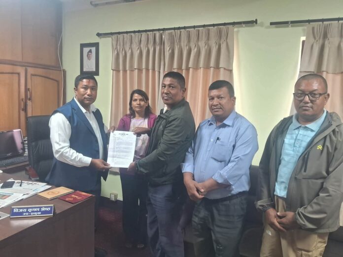 संघका जिल्ला अध्यक्ष रामकृष्ण प्रजापतिको नेतृत्वमा गएको टोलीले मध्यपुर थिमि नगरपालिकाका उपप्रमुख विजयकृष्ण श्रेष्ठलाई ज्ञापनपत्र हस्तान्तरण गरेको हो।