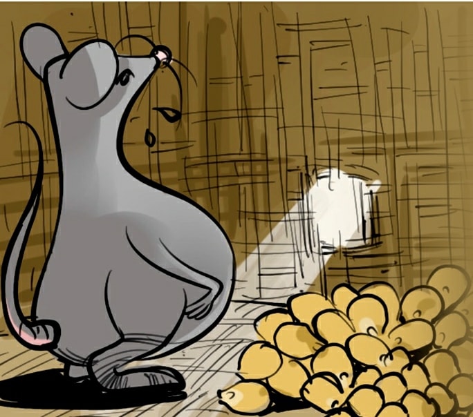 एउटा लोभी मुसाले टम्म मकैले भरिएको एउटा टोकरी देख्यो । उसले त्यो सबै मकै खाने विचार गर्यो र टोकरीमा एउटा सानो प्वाल बनाएर भित्र पस्यो । पेट भरिएर तृप्त नहुँदासम्म उसले मकै खायो । बेसरी अघाएपछि उसले अब बाहिर निस्कनु पर्यो भन्ने विचार गर्यो । उसले त्यस सानो प्वालबाट बाहिर निस्कन धेरै कोसिस गर्यो, तर कसै गरी निस्कन सकेन ।
