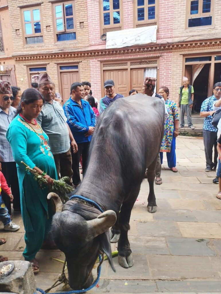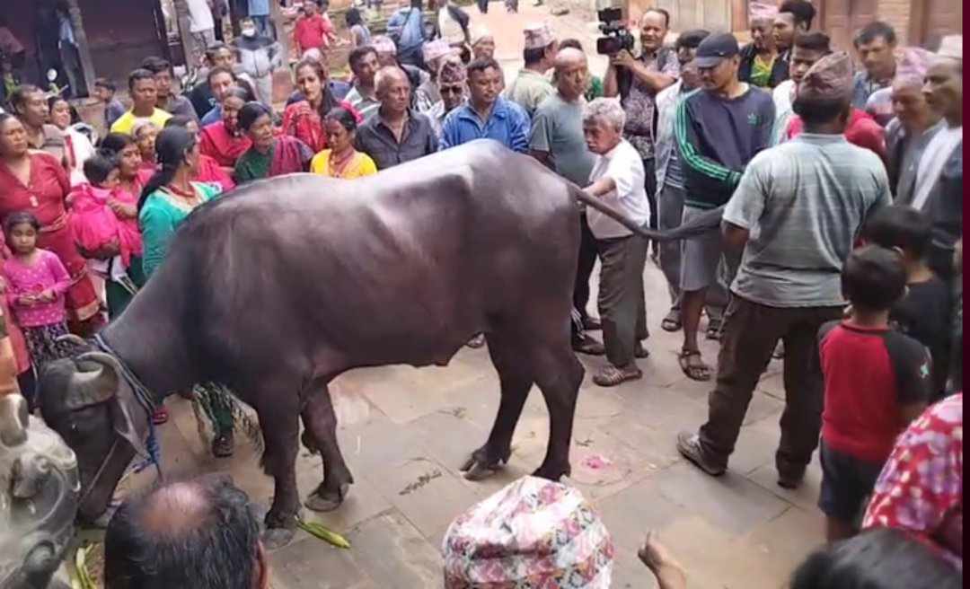 श्रावण ८, नेपालकै लामो जात्राको रूपमा मानिने नवदुर्गा देवगण जात्राको परम्पराअनुसार सोमबार बिहान नवदुर्गा द्योछेमा खम्ये (राँगो) भित्र्याइएको छ । उक्त खम्ये गठेमङगल पछि मन्दिरको मूल पुजारी नकींले विशेष पूजा गरेर खम्ये नवदुर्गा द्योछँमा भित्र्याउने चलन रहदै आएको छ ।